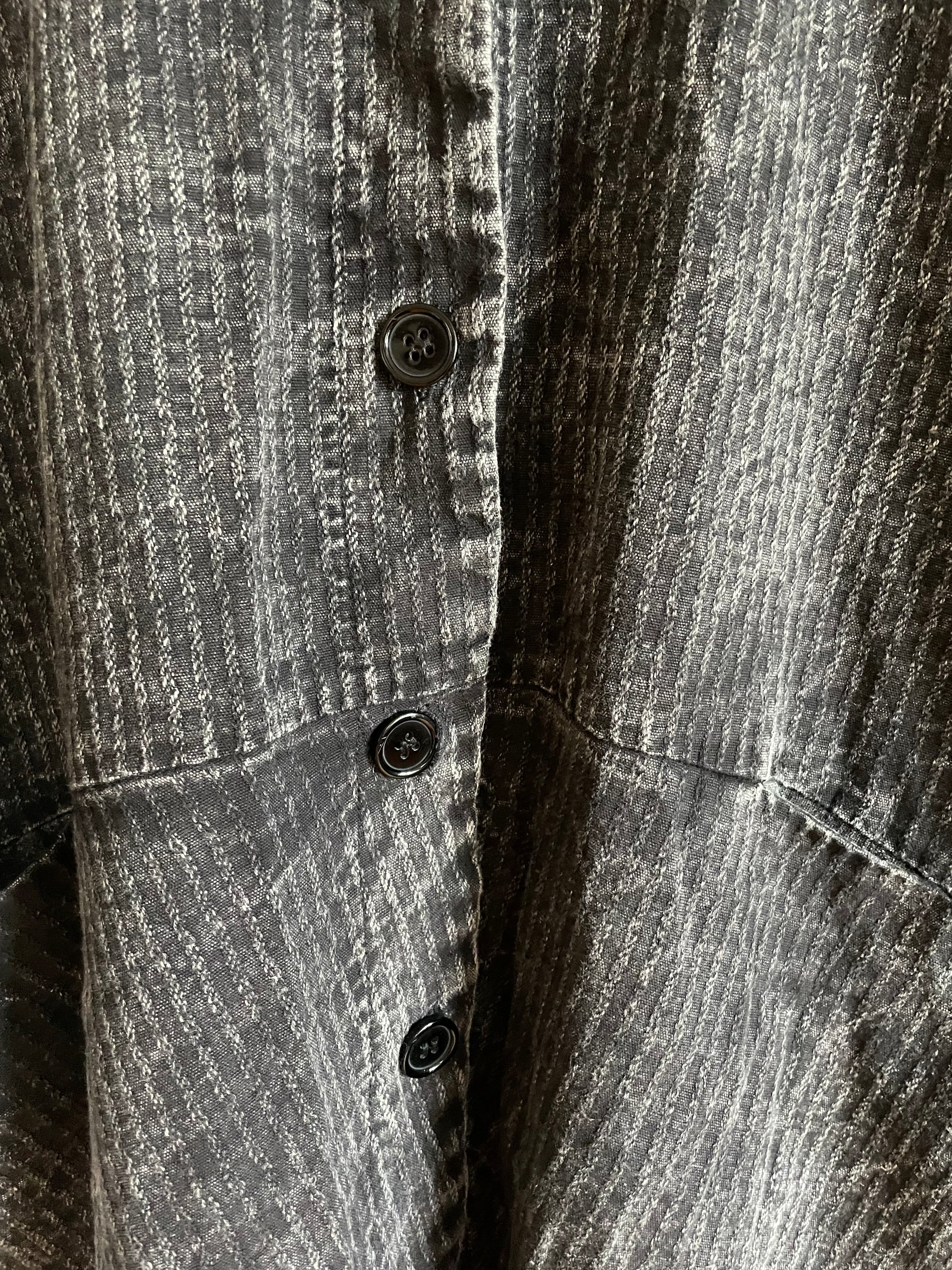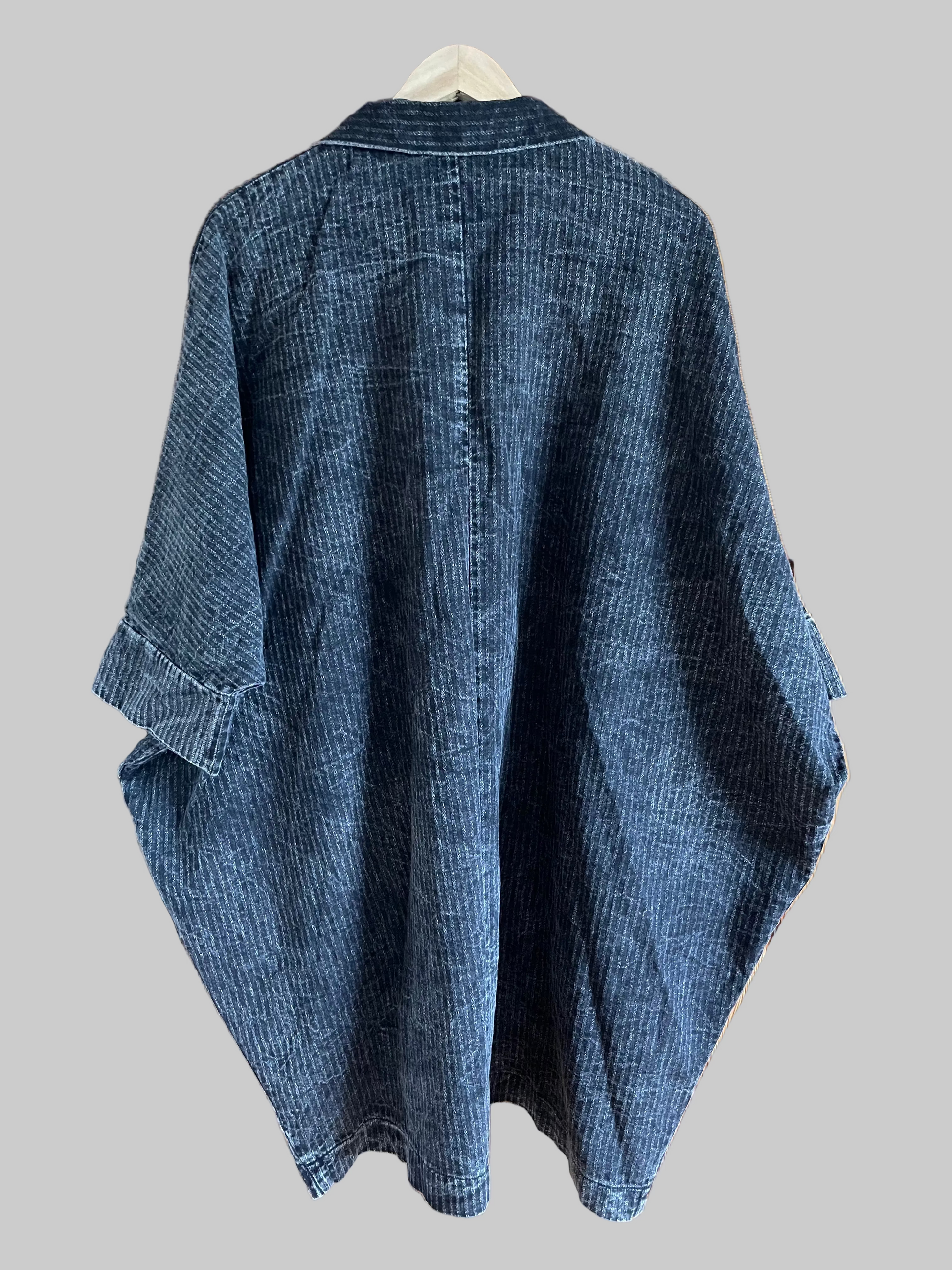 Jackan är omsorgsfullt handsydd, vilket gör varje exemplar unikt och ger en känsla av äkta hantverk. Den generösa, oversized passformen skapar en modern, avslappnad silhuett som ger både rörelsefrihet och en elegant nonchalant look.